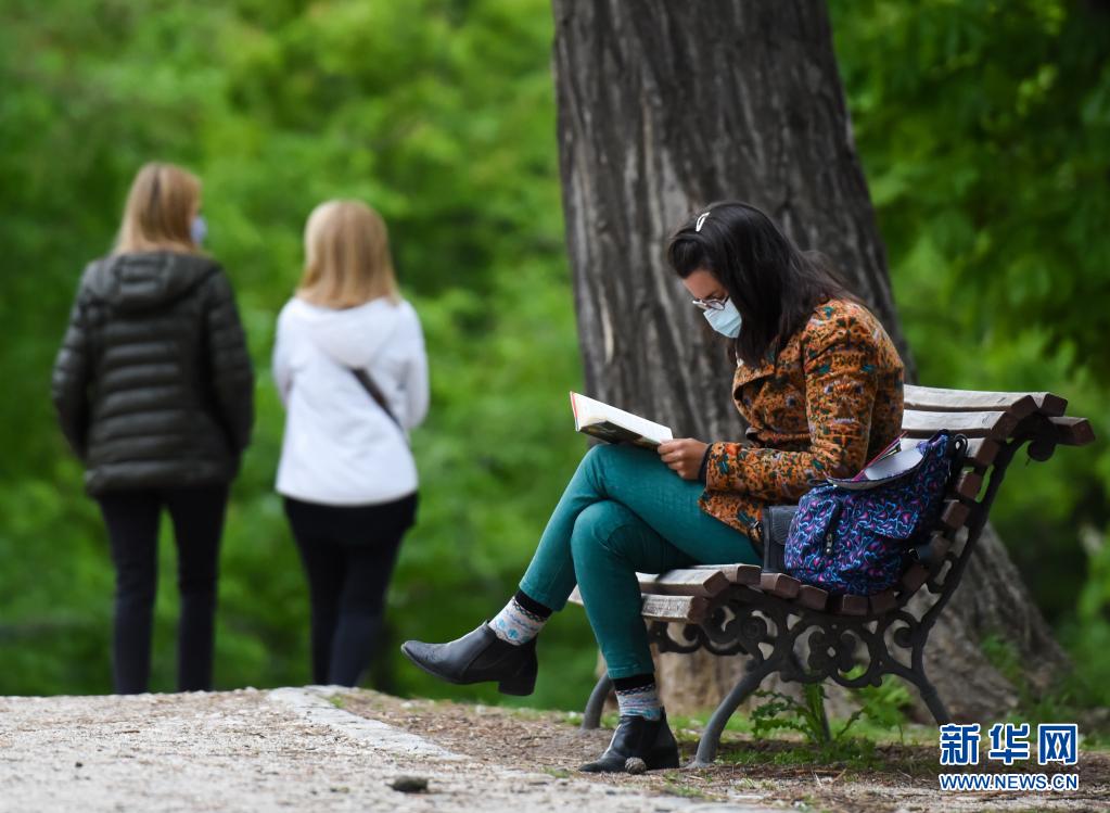 4月15日,一名女子在西班牙馬德里一個公園內(nèi)讀書。