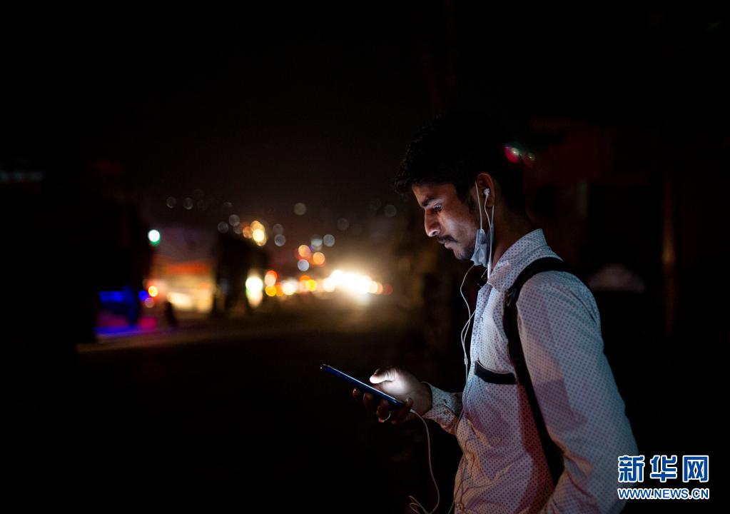 4月28日晚,一名男子在尼泊爾首都加德滿都的路邊等車,準備在封禁措施實施前離開加德滿都返回家鄉(xiāng)。