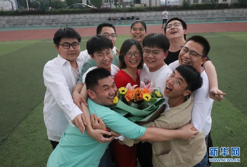 6月9日,在湖南省婁底市第四中學(xué),完成高考的老三李慶民(中排右二)和老師同學(xué)們在一起。