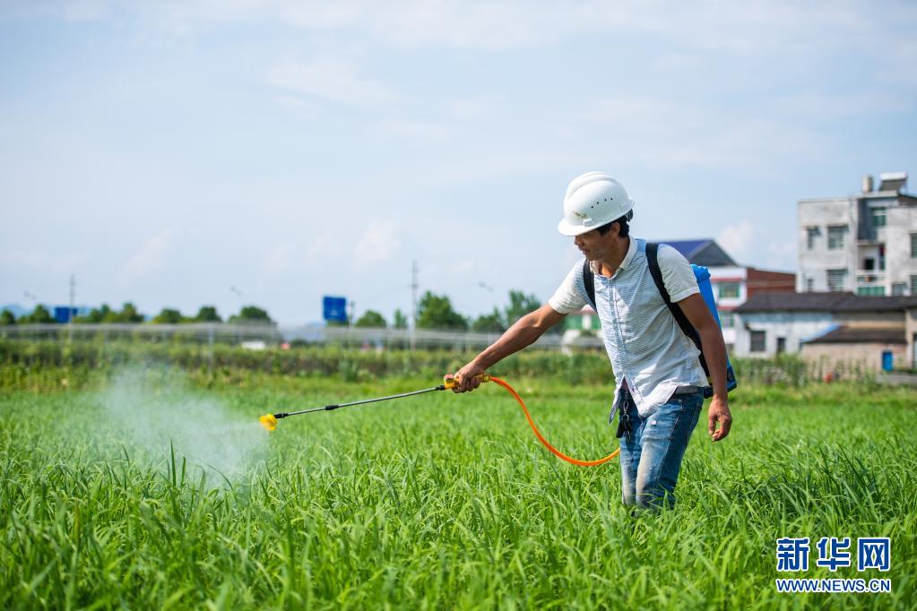 6月26日,湖南瀏陽龍伏鎮新開村村民在田間打藥。