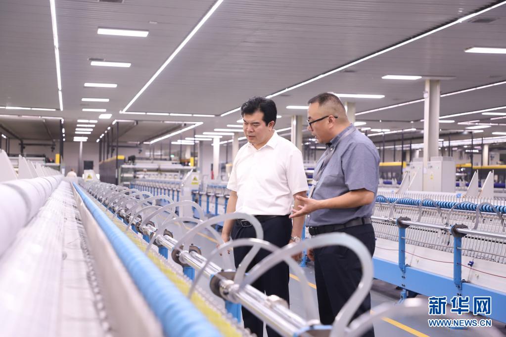 6月18日,王俊紅(左)在清河縣經濟開發區調研民營經濟發展。新華社發