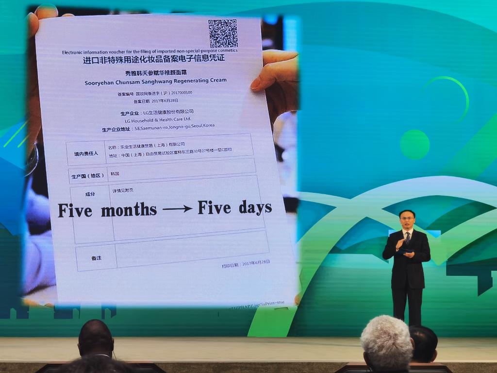 2021年6月16日,在“中國共產黨的故事——習近平新時代中國特色社會主義思想在上海的實踐”特別對話會上,中國(上海)自由貿易試驗區管委會政策研究局副局長鄭海鰲進行講述。 新華社記者 吳宇 攝