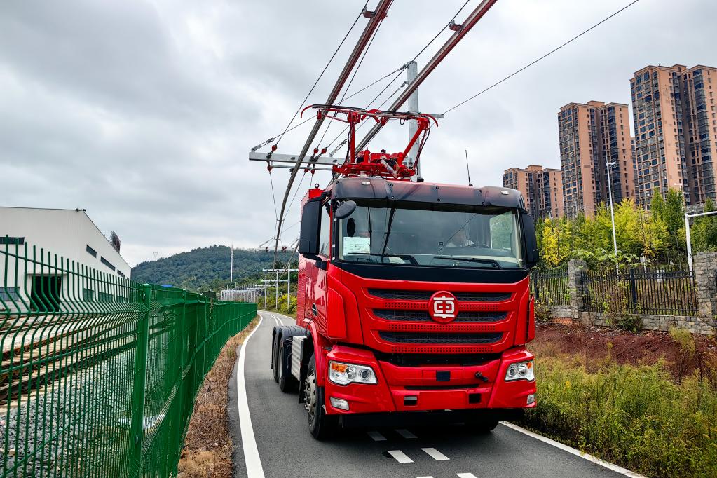记者在中车株机电气化公路试验线上看到,“辫子重卡”平稳、安静地驶过直线段、连续弯道与坡道,受电弓与接触网能保持精准接触,稳定传输的电流不断给重卡带来源源不断的动力。中车株机电气化公路项目负责人王兵说:“这条试验线已累计运行近1万公里,我们通过模拟颠簸、起伏等极端路况,不断优化弓网性能,目前弓网接触率已经提升至95%以上。”