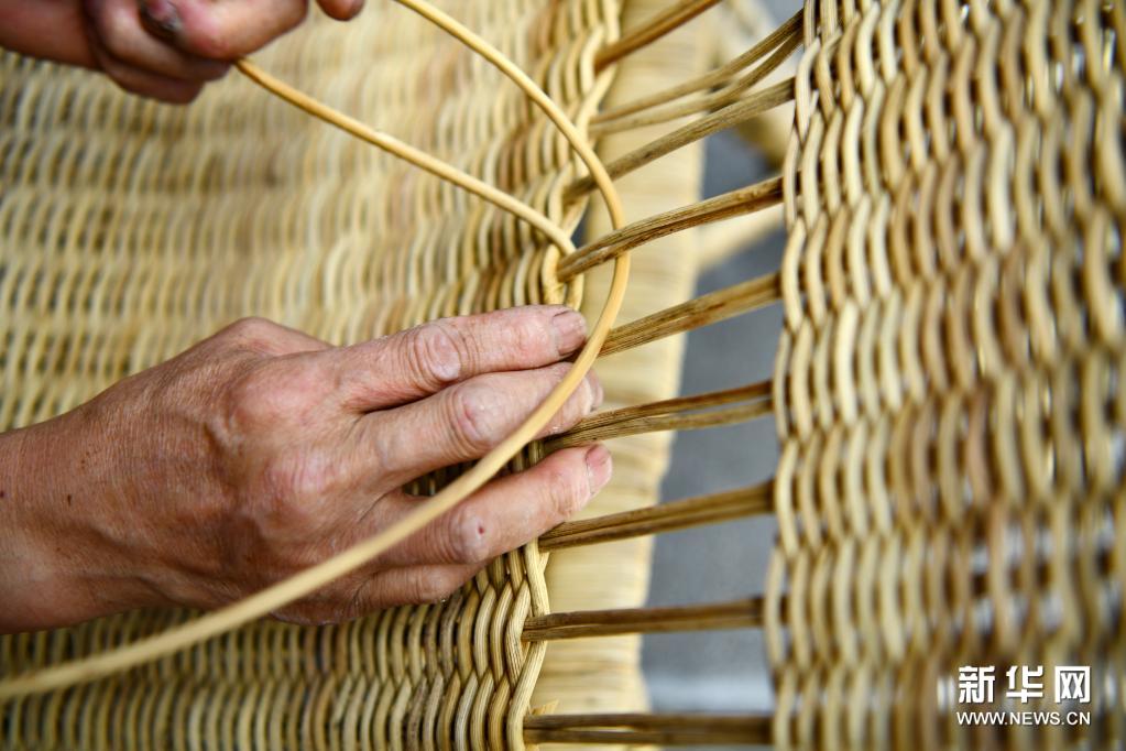 7月10日,在遵義市匯川區板橋鎮婁山關社區,居民在藤編作坊里加工藤椅。新華社發(羅星漢 攝)