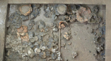 这是10月16日在位于埃及贝尼苏韦夫省的美杜姆金字塔附近拍摄的石棺局部。