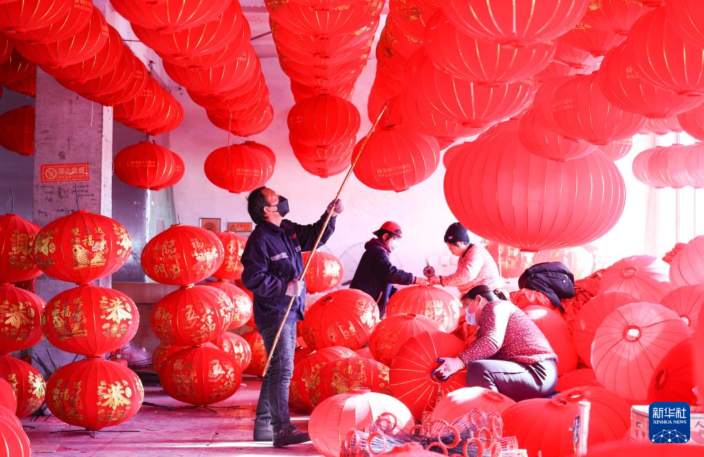 春节临近,河北省多地灯笼制作工坊赶制大红灯笼,供应节日市场。