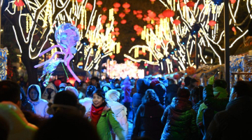 当日是农历正月初九,云南省大理白族自治州南涧彝族自治县举行龙灯会,来自全县8个乡镇的30多支表演队伍身着盛装齐聚南涧县城,闹龙灯庆新春。