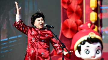 2月11日,小演员在乌鲁木齐大巴扎步行街举办的社火巡游活动中表演“川剧变脸”。