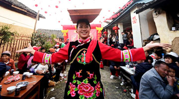 2月10日,浙江省金华市武义县俞源乡俞源古村村民举行传统民俗活动“擎台阁”。