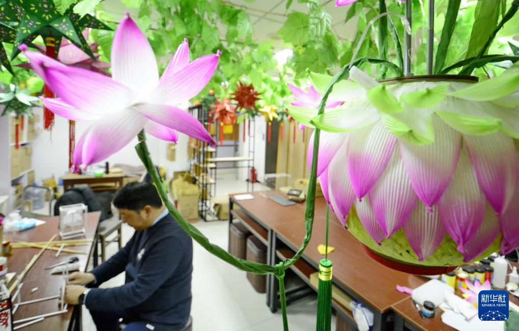 2月10日,马海捷在他的工作室制作小型灯彩。