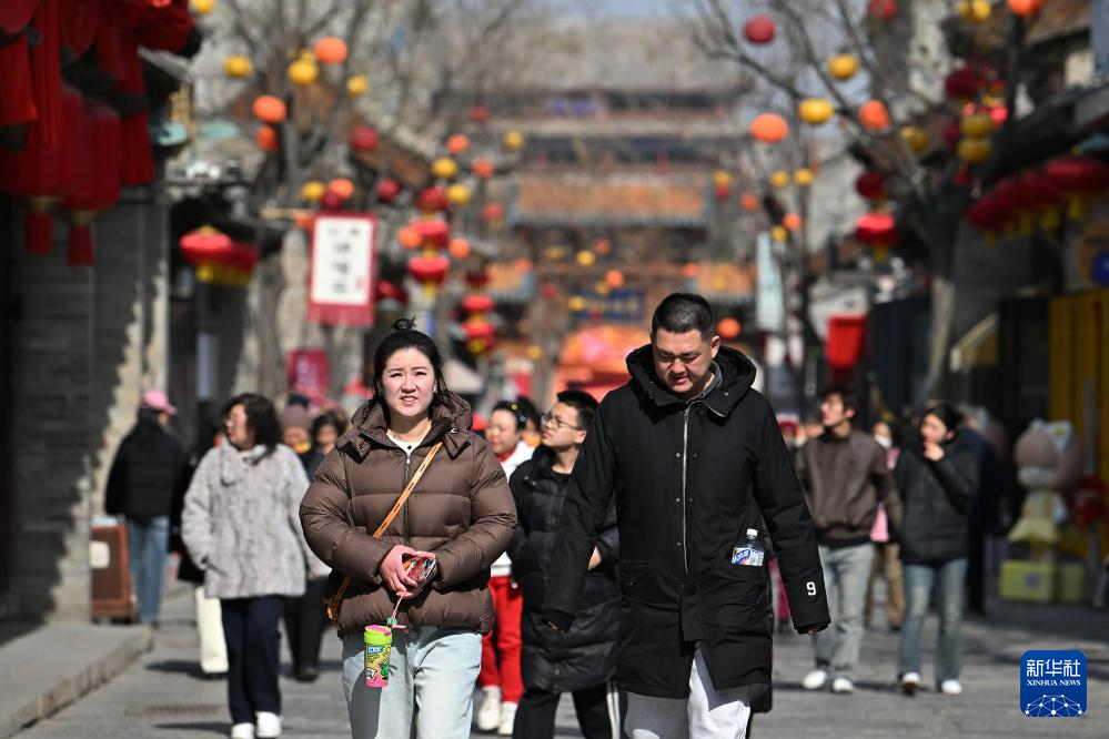 2月20日,游人在忻州古城游览。