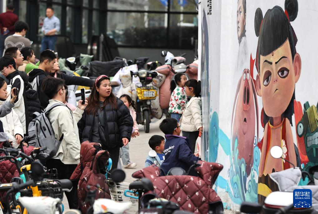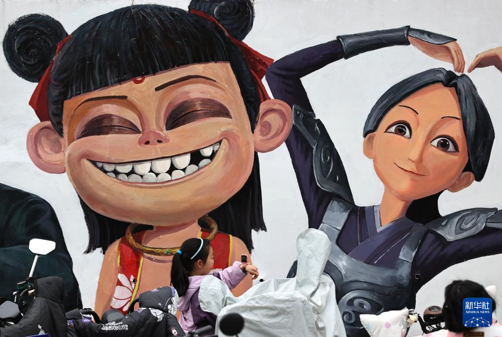 近日,随着《哪吒之魔童闹海》电影热映,各地哪吒主题墙绘吸引人们打卡拍照。