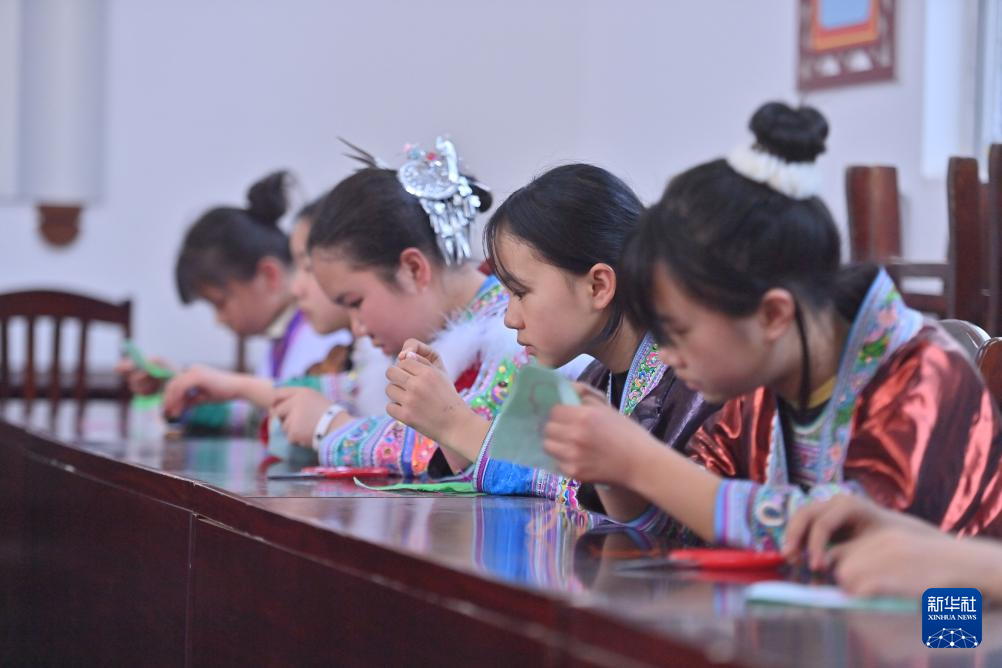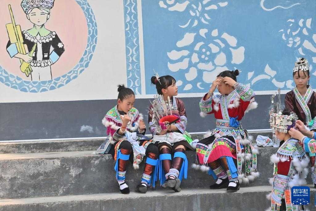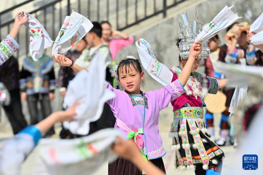 当日,广西柳州市融水苗族自治县杆洞乡中心小学举行石榴籽连籽·共庆“三月三”乡村少年宫民族风情文化展演活动,各族少年通过芦笙踩堂舞、山歌对唱、刺绣等丰富多彩的民俗文化活动,喜迎“三月三”传统节日。