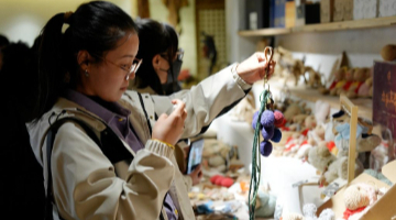 3月29日,嘉宾在嘉亭荟举行的文旅市集上展示非遗项目“苏绣”。