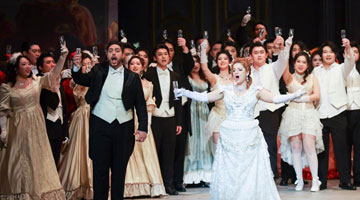 4月13日,在西双版纳傣族自治州景洪市,演员在傣历新年节(2025年泼水节)庆祝大会上表演。
