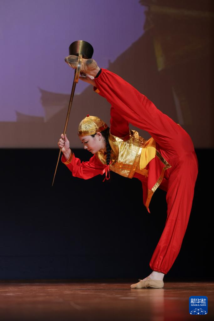 4月14日,在斯洛文尼亚皮兰市,演员表演节目《武风舞韵》。