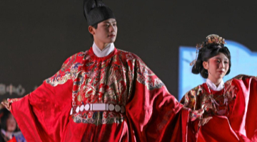4月29日,演员在悬泉置遗址景区开园仪式上表演。