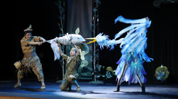5月18日,小朋友在江苏省昆山戏曲百戏博物馆模仿演员动作。
