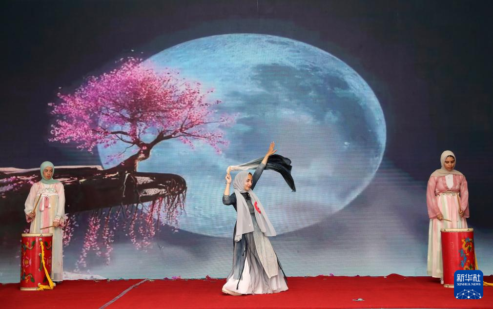 5月17日,在埃及开罗,参赛选手进行才艺展示。