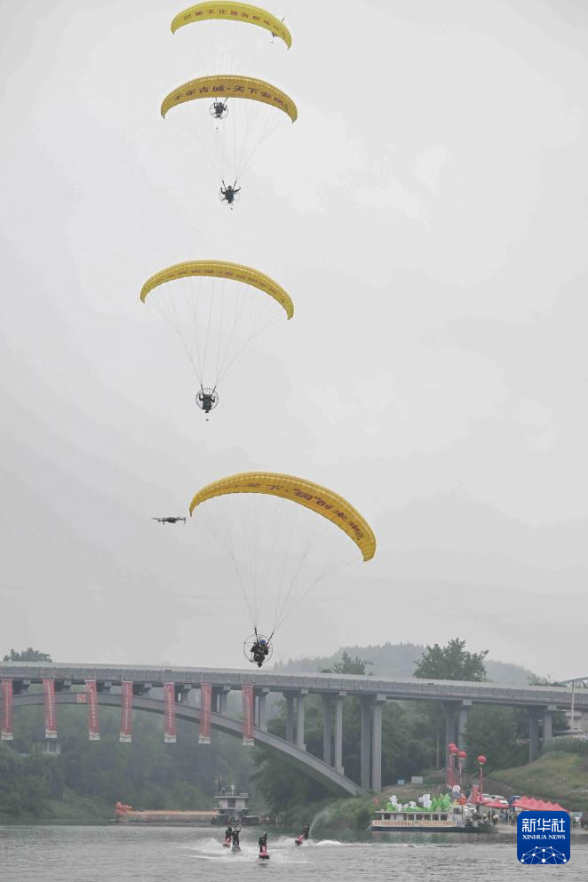 当日是端午节,为期两天的“2025安居古城非遗龙舟会”活动在重庆市铜梁区开幕。活动除举行传统的龙舟竞渡、民俗表演、特色美食等项目外,还将国家级非物质文化遗产代表性项目“高杆船技”融入其中,为市民和游客带来一场丰富的文化体验。
