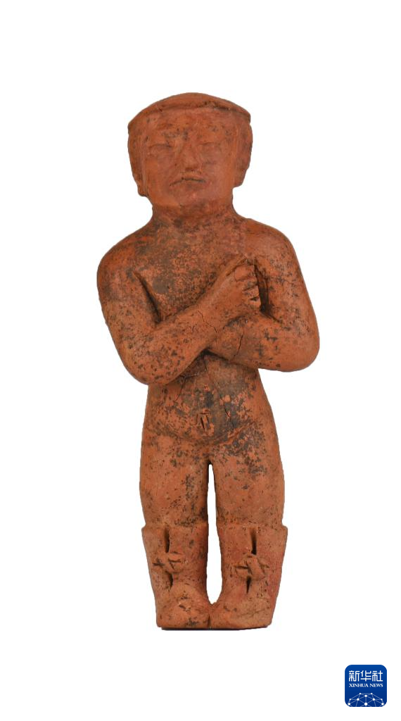 这是东山头遗址出土的红山文化陶塑站姿男俑(资料照片)。