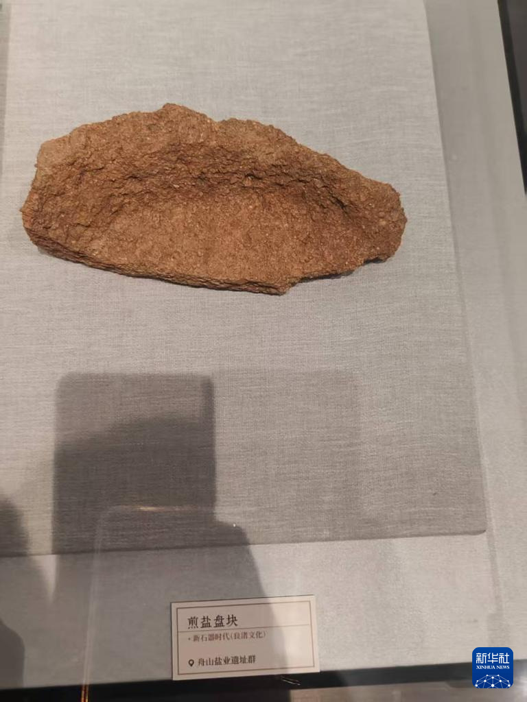图为在“浙里寻珍:2025年度考古成果展”上展出的煎盐盘块。新华社记者冯源 摄