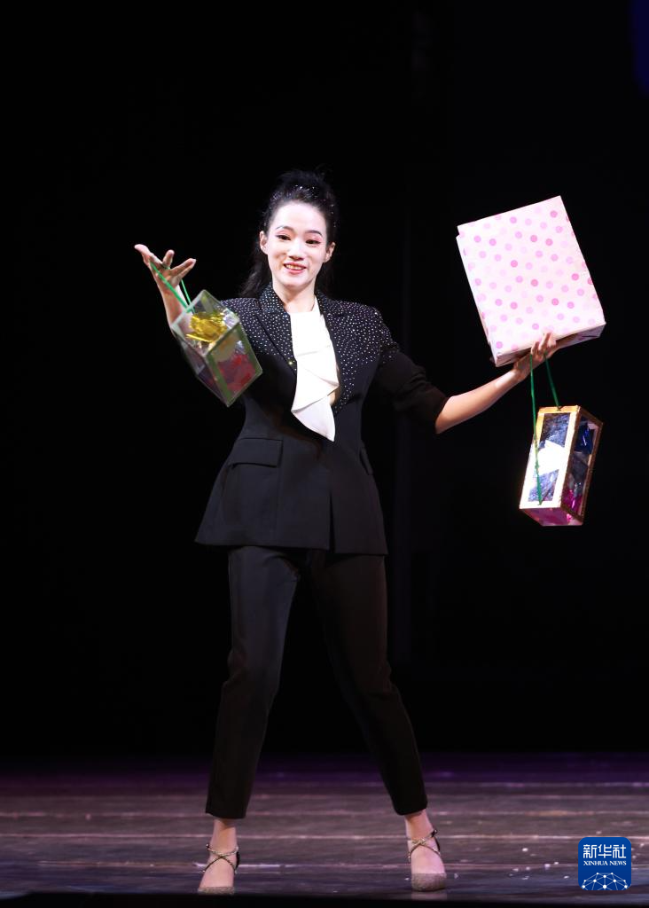2月4日,在吉尔吉斯斯坦首都比什凯克举行的“欢乐春节”文艺演出上,演员表演魔术《幻变》。