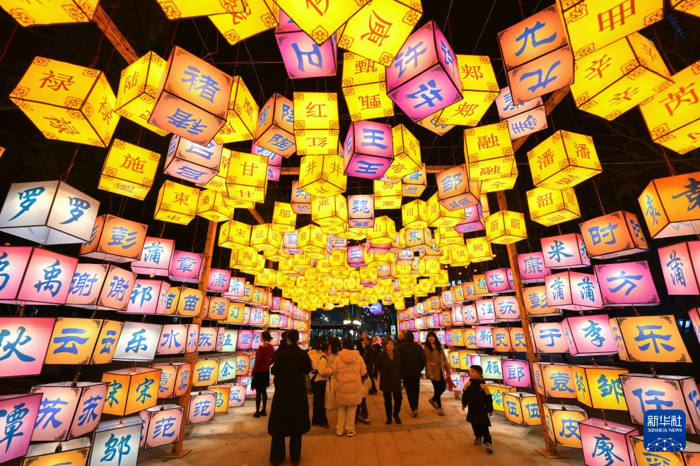 2月11日,市民在甘肃省定西市安定区新时代广场观赏传统手工花灯展览。