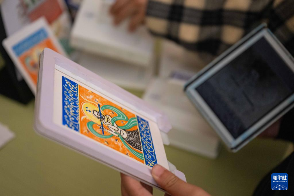 2月20日,市民在敦煌文化周活动上体验套色印章。新华社发(张金加摄)