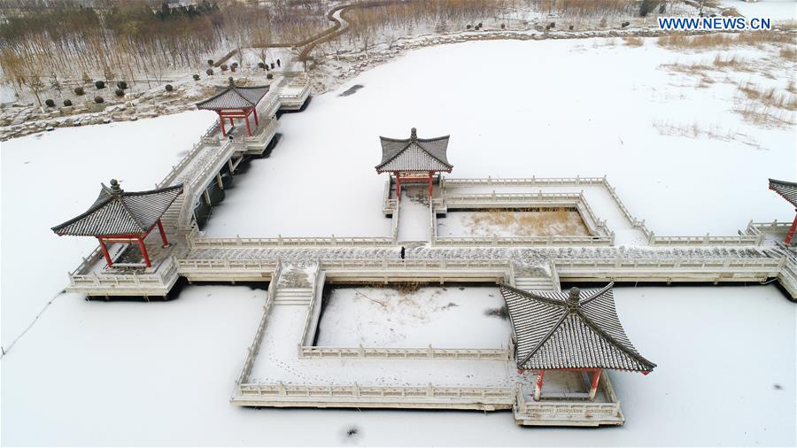 Photo taken on Dec. 14, 2017 shows the view of snow at Haibao Park in Yinchuan, capital of northwest China's Ningxia Hui Autonomous Region. (Xinhua/Wang Peng)