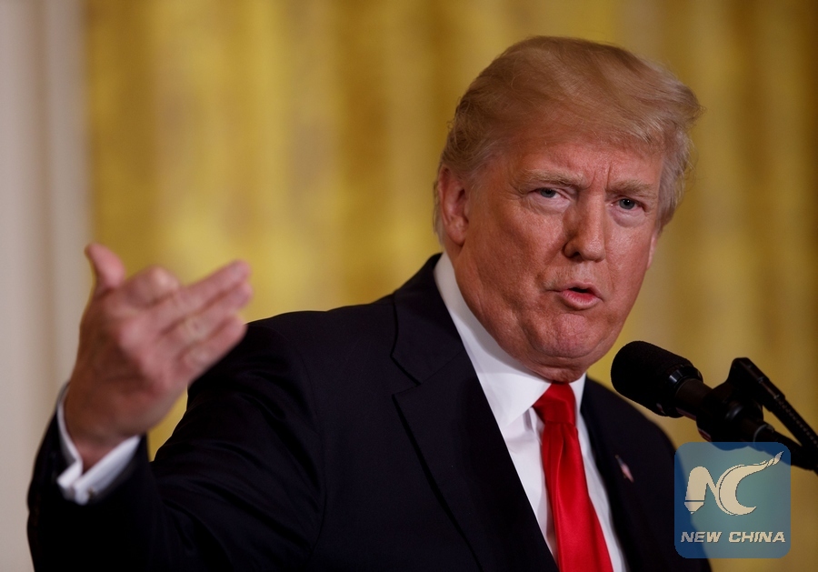 U.S. President Donald Trump speaks during a joint press conference with Norwegian Prime Minister Erna Solberg (not seen) at the White House in Washington D.C., the United States, on Jan. 10, 2018. (Xinhua/Ting Shen)