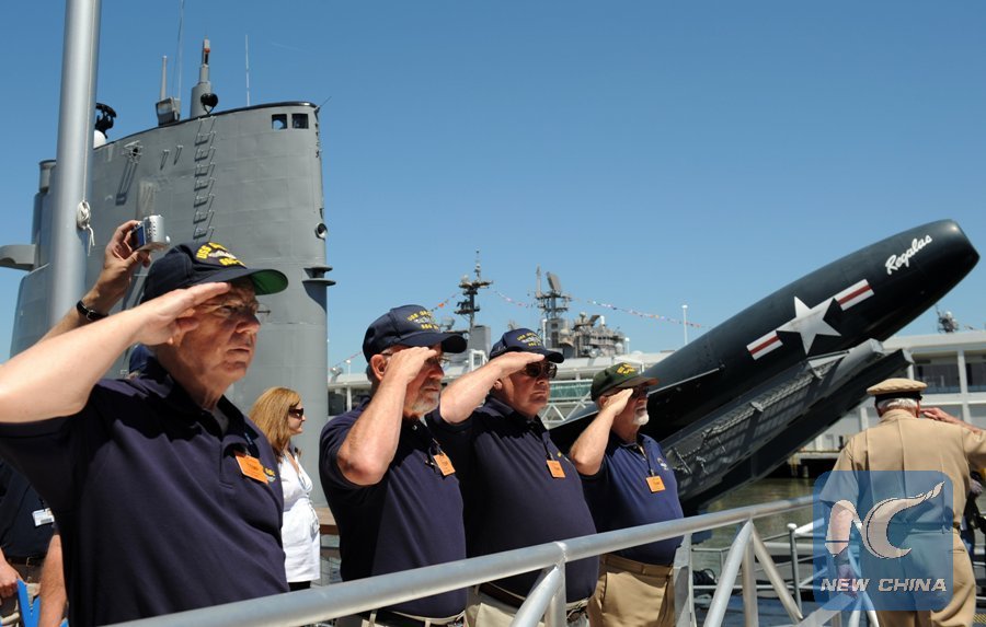 File Photo: Veterans of USS Nuclear Submarine "Growler" (SSG 577) welcome visitors to the submarine Growler at the Intrepid Sea, Air & Space Museum, Manhattan, New York, the United States, May 21, 2009. (Xinhua/Gu Xinrong)