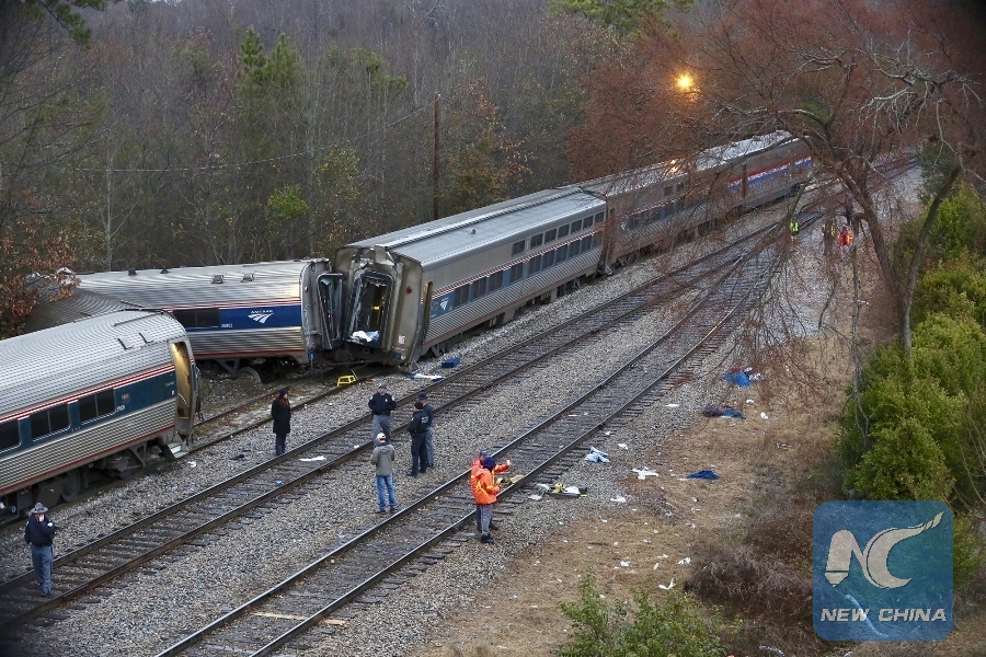 It is the third deadly wreck involving Amtrak in less than two months. Late last year, an Amtrak train derailed in northwestern U.S. state of Washington, killing three people and injured dozens. Last week, an Amtrak train carrying Republican lawmakers to a retreat in West Virginia hit a garbage truck in Virginia, leaving one dead and two seriously injured.