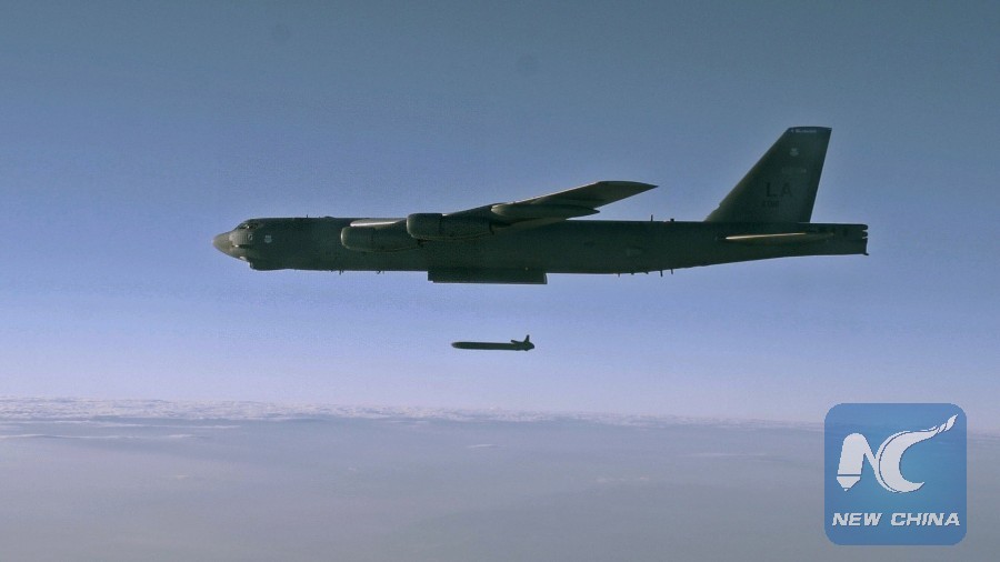 An unarmed AGM-86B Air-Launched Cruise Missile is released from a B-52H Stratofortress over the Utah Test and Training Range during a Nuclear Weapons System Evaluation Program sortie, 80 miles west of Salt Lake City, Utah, U.S., Sept. 22, 2014. (Xinhua/REUTERS)