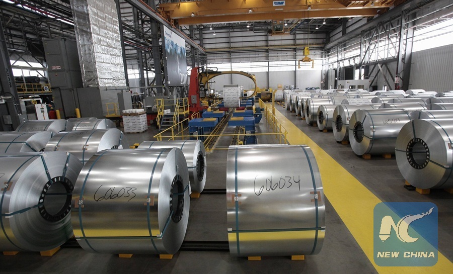 Steel coils wait to be shrink wrapped and shipped to customers at the Severstal steel mill in Dearborn, Michigan in this June 21, 2012 file photograph. (Xinhua/Reuters)