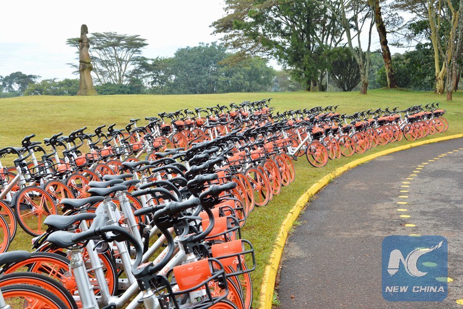 Photo taken on March 5 shows bikes of Chinese bike sharing giant Mobike in the United Nations Office at Nairobi. (Xinhua/Jin Zheng)
