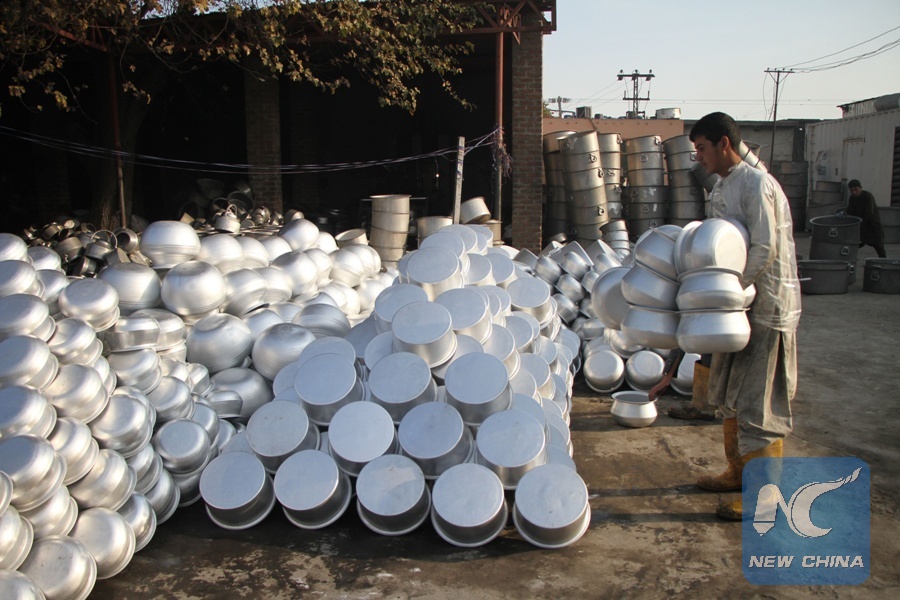 An Afghan man works at a local aluminum factory in Nangarhar province, Afghanistan, Dec. 19, 2016. (Xinhua/Rahman Safi)