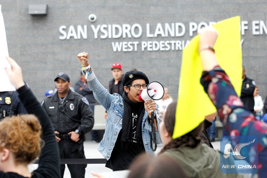 Activists and community groups hold a rally to condemn the visit of U.S. President Donald Trump to California during his visit to view border wall prototypes in San Diego, California, in San Ysidro, California, U.S., March 13, 2018. (Xinhua/REUTERS)