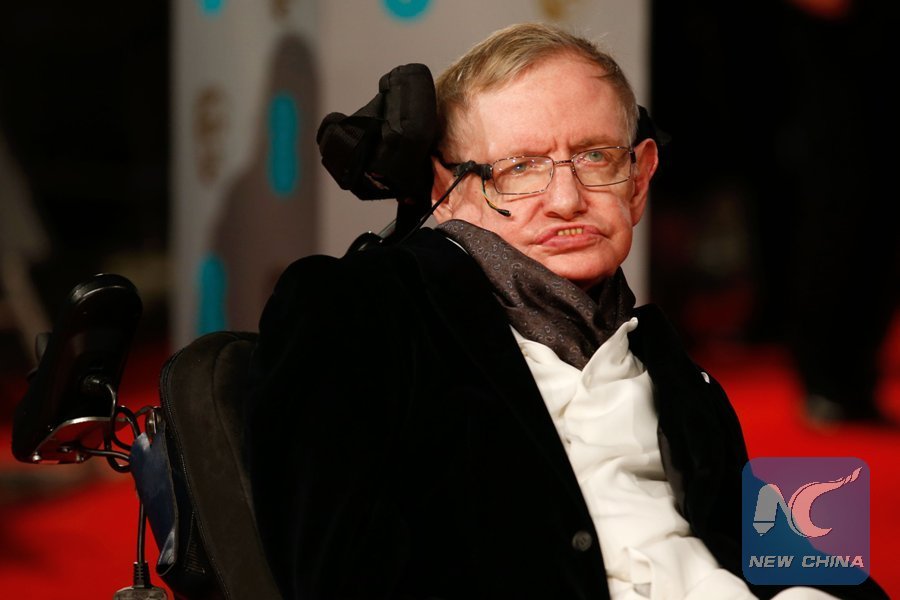 File photo taken on Feb. 8, 2015 shows British scientist Stephen Hawking arriving for the BAFTA British Academy Film Awards at the Royal Opera House in London. (Xinhua/AFP)