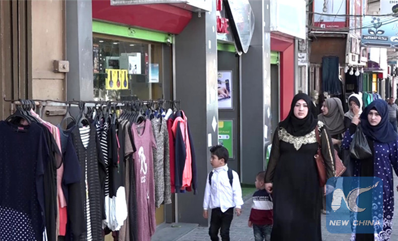 In this picture taken on March 21, 2018, Gazans passed by a store front in the Gaza Strip that has been under tight blockade by Israel since 2007.(Xinhua/Zhao Yue)