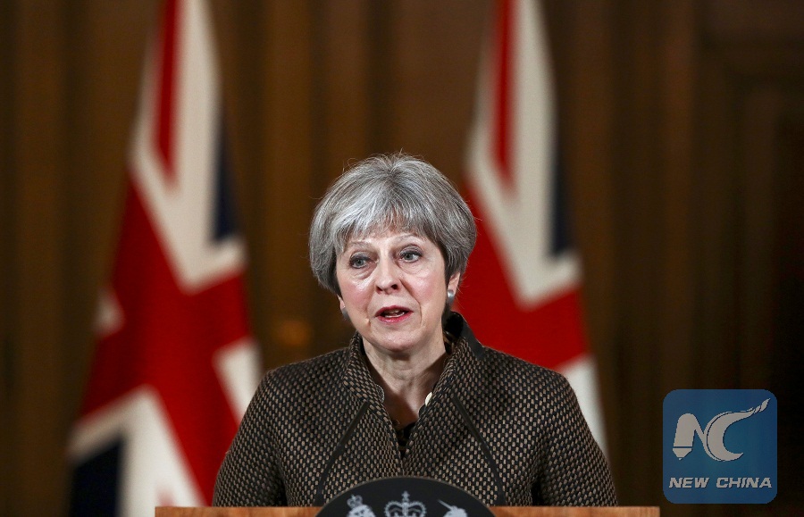 LONDON, April 14 (Xinhua) -- Although the British government on Saturday defended its decision to join the U.S.-led military strikes on Syria without consulting Parliament first, British opinion leaders immediately questioned about the Whitehall's legal justification of such a military action.