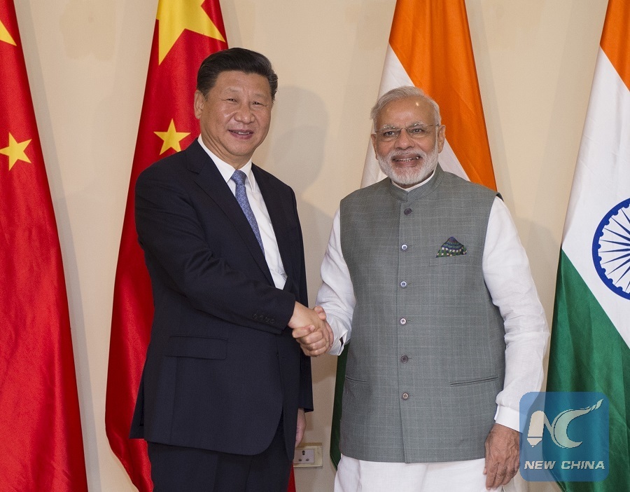 File photo: Chinese President Xi Jinping (L) meets with Indian Prime Minister Narendra Modi in the western Indian state of Goa, Oct. 15, 2016. (Xinhua/Xie Huanchi)