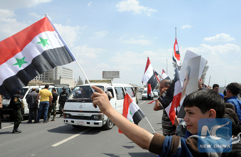 Syrians hailed for the reopening of the highway linking Damascus to the central region of Syria on May 15. (Xinhua)