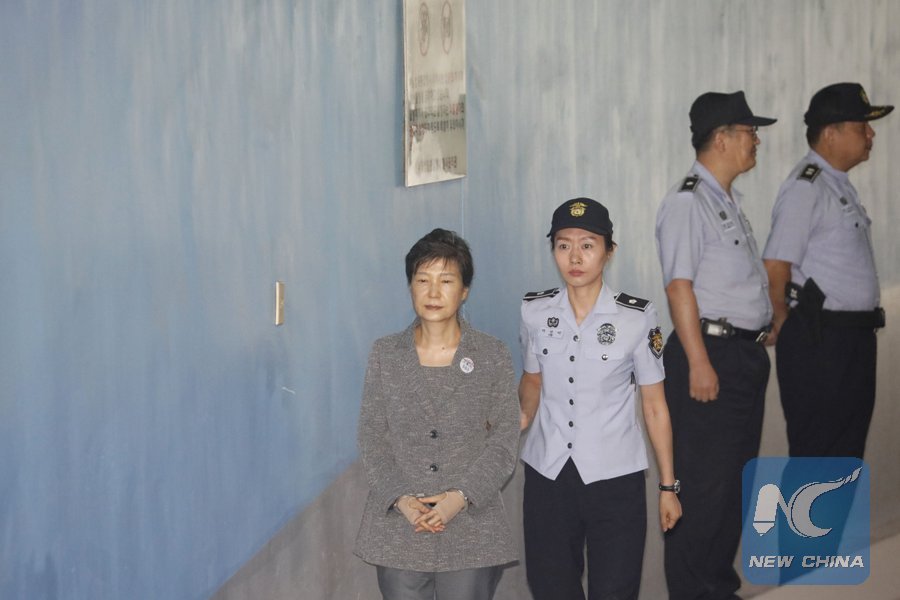 Impeached President of Republic of Korea Park Geun-hye (L) arrives at a court in Seoul on August 25, 2017. (AFP Photo)