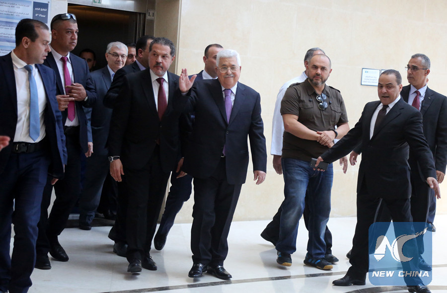 RAMALLAH, May 28 (Xinhua) -- Palestinian President Mahmoud Abbas on Monday left hospital in the West Bank city of Ramallah eight days after he was hospitalized with pneumonia and high fever.