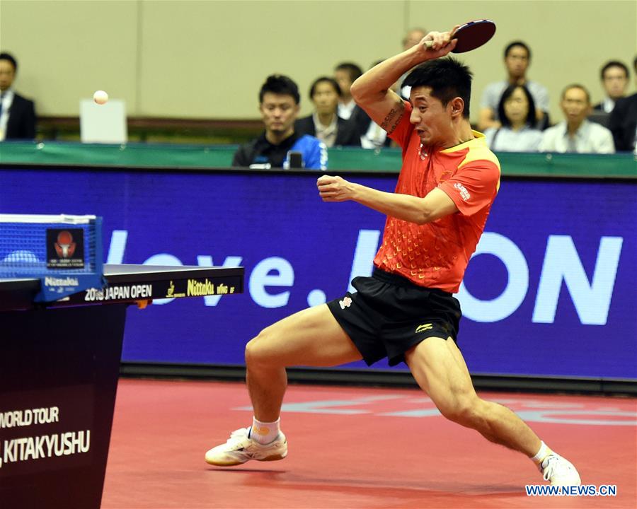 Zhang Jike of China returns the ball during the men's singles final against Tomokazu Harimoto of Japan at the 2018 ITTF World tour Japan Open in Kitakyushu, Japan, on June 10, 2018. Zhang lost 3-4. (Xinhua/Ma Ping)