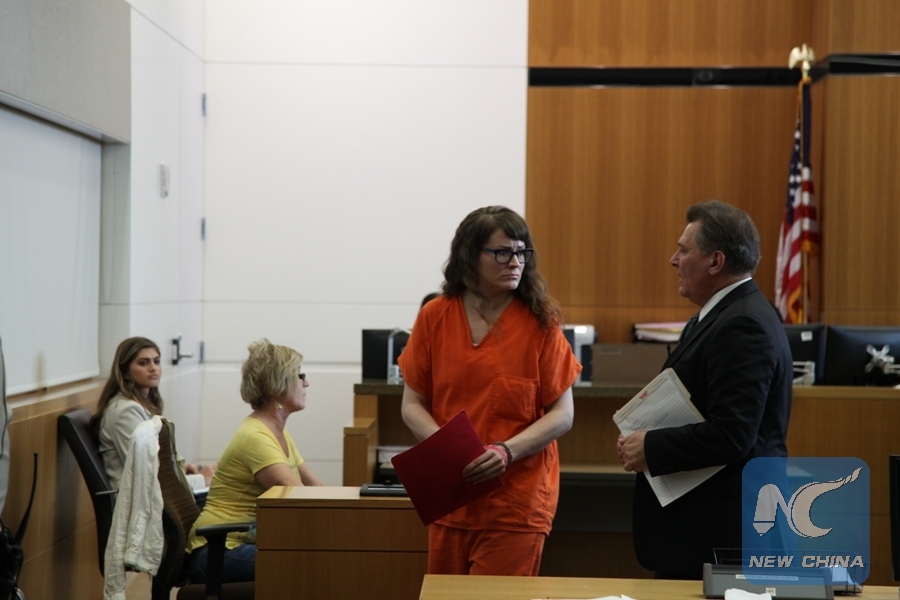 Holly Davis (2nd R) appears with her lawyer at the Maricopa County Superior Court in Phoenix, Arizona, the United States, June 15, 2018. (Xinhua/Gao Shan)