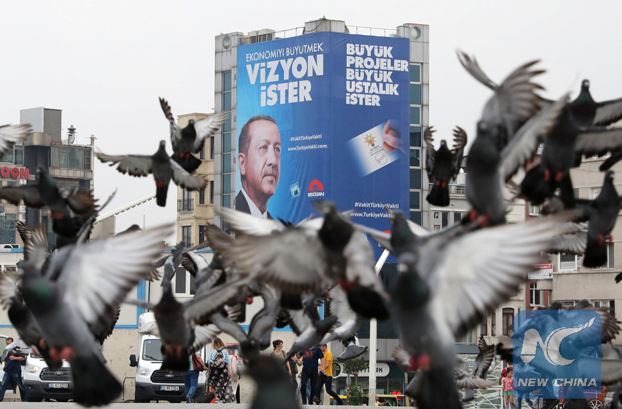 ISTANBUL, June 22 (Xinhua) -- The Democracy Square in Besiktas, one of the most crowded districts of Istanbul, was turned into a festive area adorned by colorful party flags, banners, and posters of presidential candidates, as the elections loomed.