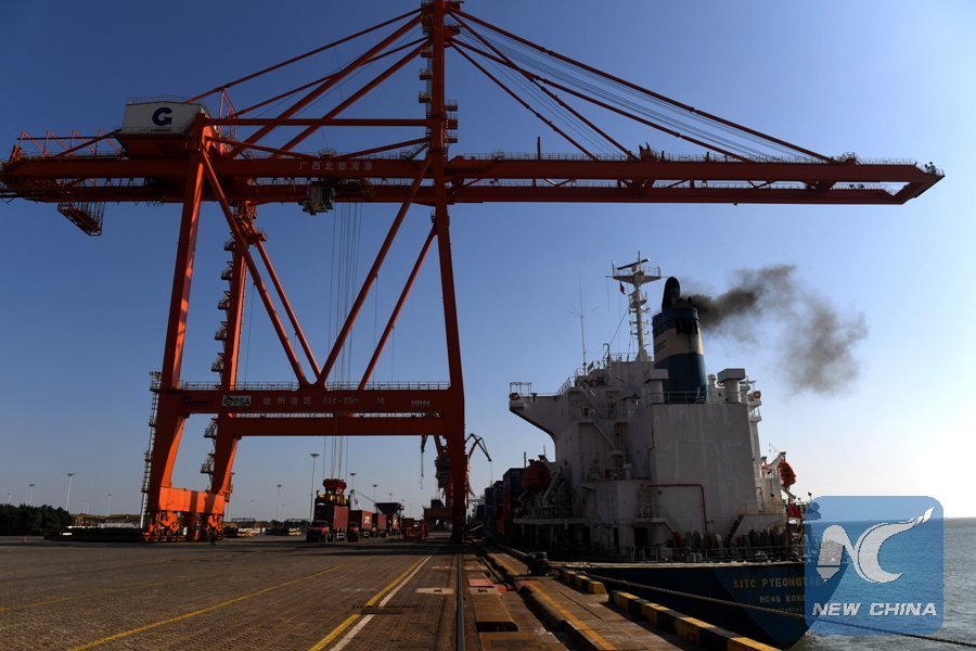 File Photo: A cargo ship berths at Qinzhou port in Qinzhou, south China's Guangxi Zhuang Autonomous Region, Dec. 19, 2017. (Xinhua/Zhang Ailin)
