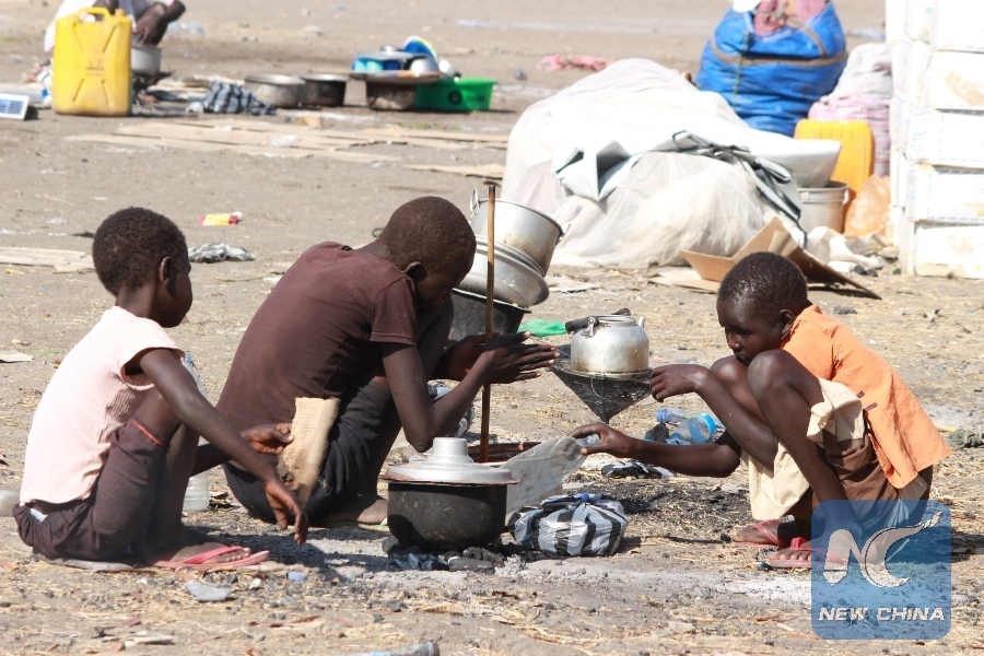 File Photo: Internally displaced persons (IDPs) prepare food at a temporary camp near Juba International Airport in Juba, capital of South Sudan, Jan. 7, 2017. (Xinhua/Gale Julius)